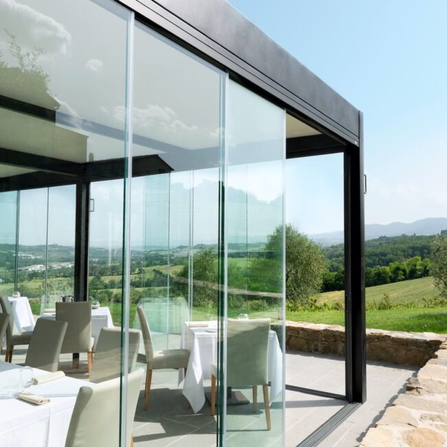 Ogni struttura nasce da uno studio tecnico accurato per integrarsi con l’architettura di terrazze, giardini, ristoranti e strutture ricettive.